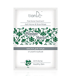 3)Тканевая маска- Очищающая маска для лица от угрей и рубцов Master Herb - Маска эффективно очищает поверхность кожи, нормализует избыточную секрецию сальных желез, сужает поры, предотвращает возникновение акне. Выравнивает микрорельеф эпидермиса, регулирует рН-баланс, устраняет последствия негативного воздействия свободных радикалов. Активные компоненты маски снимают воспаление и покраснение, ускоряют заживление микротрещин. Устраняют пятна и рубцы, появившиеся в результате угревой сыпи. http://www.podarokvostoka.ru/shop/480/desc/ochishhajushhaja-maska-dlja-lica-ot-ugrej-i-rubcov-35g-kod-11307