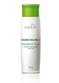 3)Смягчающий тоник - cредство освежает и мягко тонизирует кожу, удаляет остатки косметических средств. Завершает процедуру очищения лица, смягчает и увлажняет. Повышает эффективность последующих средств ухода. Экстракт листьев гинкго билоба в составе средства повышает устойчивость кожи к неблагоприятным факторам внешней среды. Витамин Е питает, увлажняет, регенерирует и укрепляет барьерный слой эпидермиса. Средство идеально подходит для ухода за чувствительной, сухой и склонной к раздражению кожей. Предохраняет ее от пересушивания, создает ощущение свежести и комфорта, восстанавливает естественный уровень увлажненности.